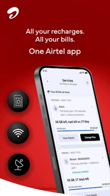 Upravljajte svim vašim Airtel uslugama sa neviđenom lakoćom. Za korisnike mobilne prepaid tarife, aplikacija Airtel Thanks omogućava trenutni uvid u detalje plana, potrošnju podataka i datum isteka, uz praktične podsetnike na glavnom ekranu kako nikada ne biste propustili obnovu. Dodajte i upravljajte više Airtel mobilnih naloga i obavite dopune za sve njih na jednom mestu. Postpaid korisnicima nudi pregled, izbor odgovarajućih paketa i plaćanje računa za samo nekoliko minuta, uz stalni pristup podacima o potrošnji i datumima dospeća. Pored toga, obnova vaše DTH konekcije donosi ekskluzivne ponude i povraćaj novca, kao i praćenje validnosti, dodavanje/uklanjanje kanala i brzu pomoć direktno iz aplikacije. Iskoristite najbolje broadband ponude, nadogradite postojeće pakete i lako plaćajte mesečne račune, uz opciju za Airtel Xstream Fiber.