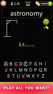 Hangman - Word Game nudi neuporedivu fleksibilnost prilagođenu svakom igraču. Izaberite između četiri zahtevna nivoa težine – Lako, Srednje, Teško i Ekspert – i pronađite pravi izazov za sebe. Igranje je moguće na više jezika, omogućavajući vam da uživate u iskustvu na jeziku koji preferirate. Personalizujte svoj doživljaj odabirom svetlog ili tamnog režima prikaza, kao i mogućnošću igranja u portretnom ili pejzažnom položaju. Kada naiđete na zaista tvrd orah, smisleni nagoveštaji su tu da vas diskretno usmere u pravom smeru, bez da odaju previše.