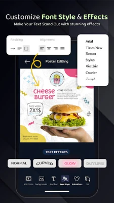 Prilagođavanje nikada nije bilo jednostavnije. Odaberite predložak koji odgovara vašoj viziji i pustite mašti na volju. **Fliyer Maker** vam omogućava da dodajete sopstvene pozadine i nalepnice, ubacite lične slike i eksperimentišete sa bezbrojnim opcijama fontova – čak možete i uneti svoje! Sa alatima za obradu slika, poput različitih oblika i dizajna za isecanje, kao i naprednim opcijama za crtanje teksta i upravljanje slojevima, vaši dizajni će biti jedinstveni i autentični. Izrada privlačnog sadržaja za promociju vašeg brenda ili događaja nikada nije bila intuitivnija.