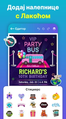 Ова апликација за израду огласних банера не служи само за пословне потребе. Лако креирајте персонализоване позивнице за било коју прилику, било да се ради о рођенданској забави, венчању, новогодишњем весељу или пословном догађају. Претворите своје идеје у стварност и привуците пажњу своје публике креативним флајерима и рекламама за друштвене мреже. Једноставан процес коришћења омогућава свакоме да постигне резултате професионалног квалитета брзо и ефикасно. Када завршите, лако сачувајте свој рад или га директно поделите са другима. Откријте колико је лако бити свој дизајнер уз овај комплетан алат.